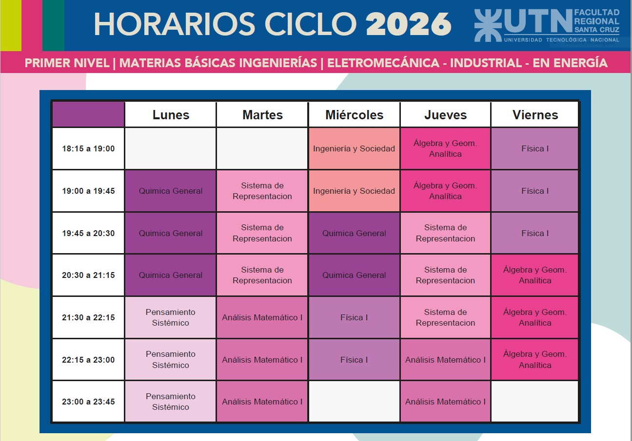 A continuación podrán ver los horarios correspondientes al primer cuatrimestre del Ciclo Lectivo 2026.